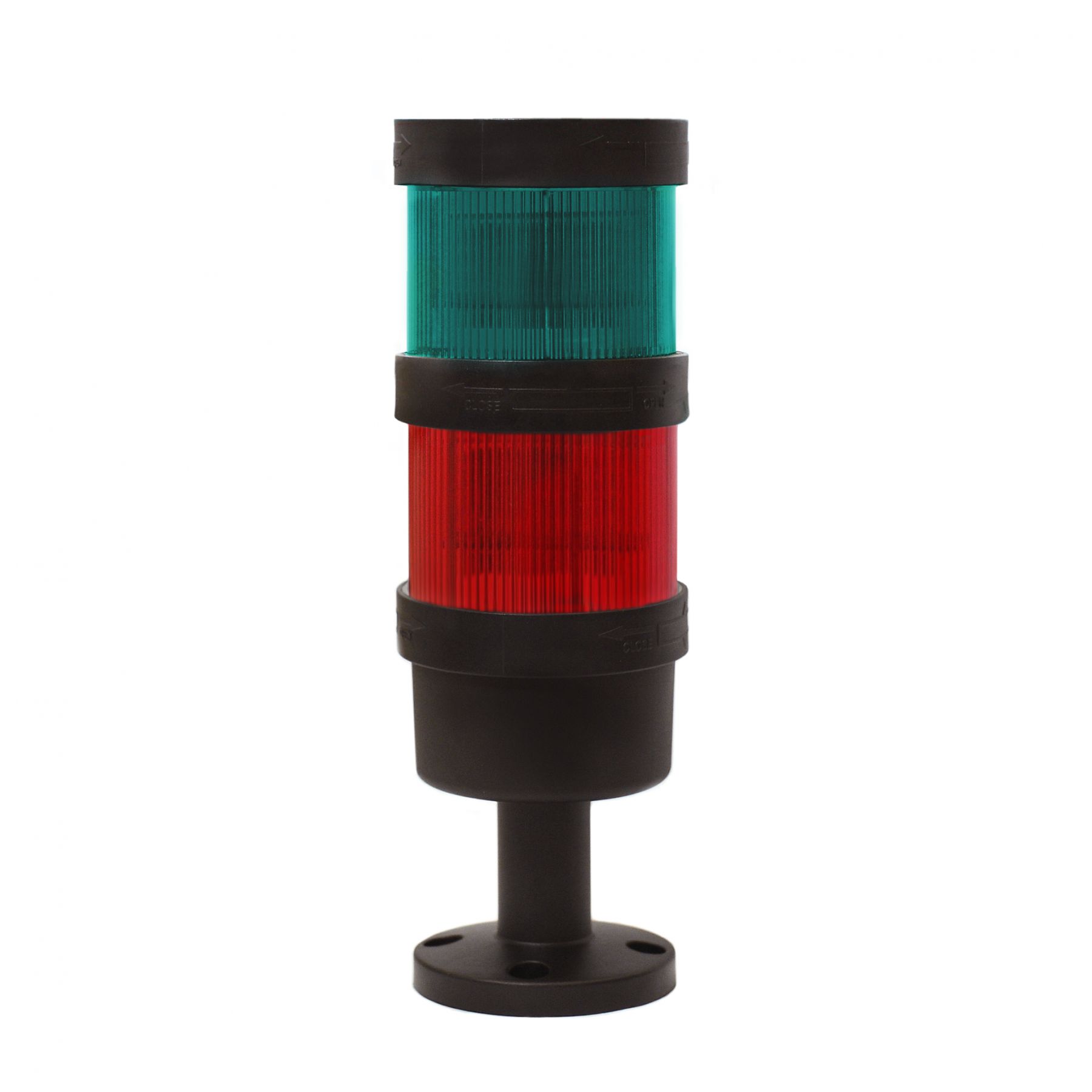 Светосигнальная колонна d=70мм, светодиод, стойка 55мм, основание d=70мм,постоянное свечение, без зуммера, цвет: зеленый, красный, 24VDC, IP65, кабель 0,5м